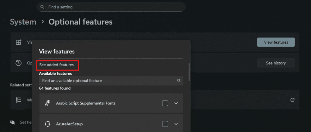 - Type “Optional features”.